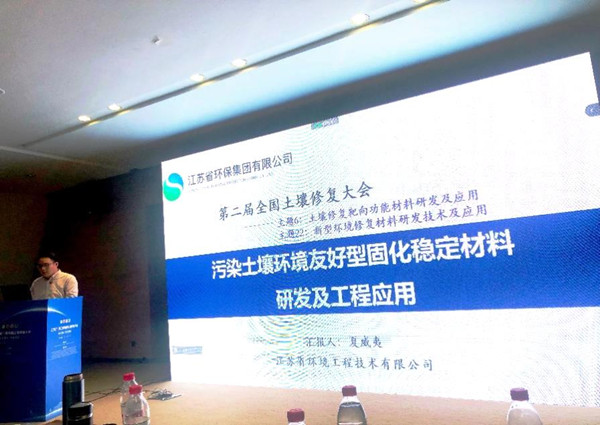 土壤與地下水事業部夏威夷博士在“新型環境修復材料研發技術及應用”分會場,圍繞污染土壤環境友好型固化穩定材料研發進行專題報告。報告系統介紹了團隊自主研發的磷基、鐵基2種系列固化穩定劑及規模化產品制備方法,以標志性原位和異位修復工程為典型案例,全面展示了新型材料研發和防控修復效果。